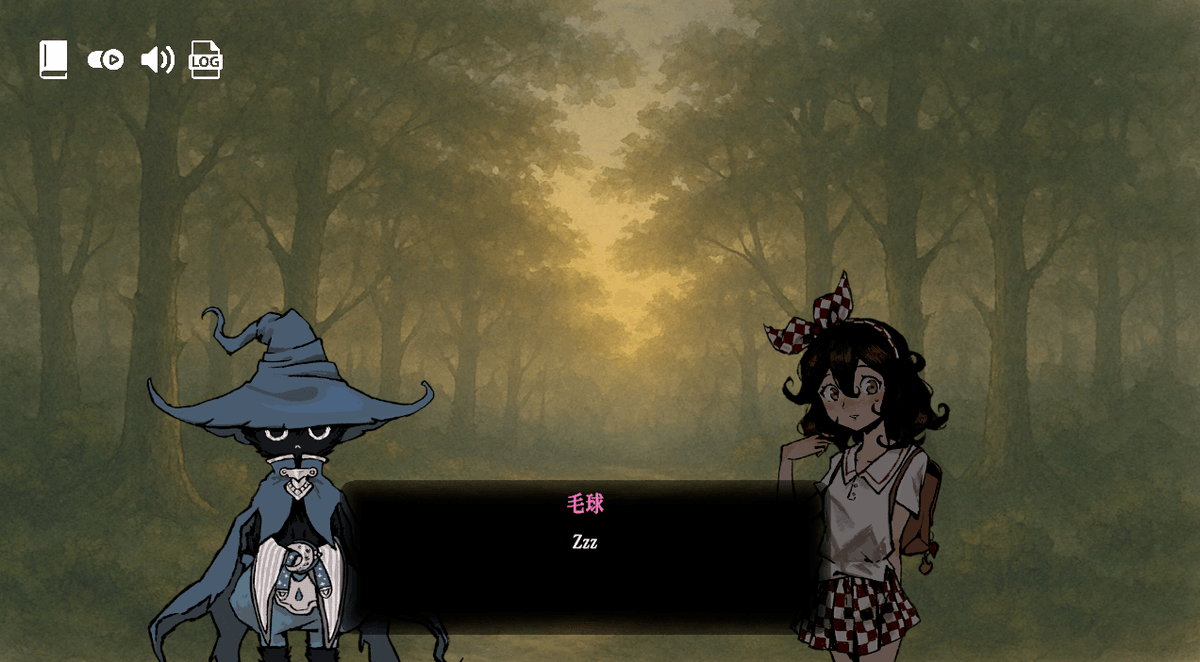 - 登场角色 - 毛球- 遗忘了过去的神秘身影,徘徊在森林深处。- 操控魔法,化作阴影潜行或探索隐秘角落。 - 拉曼德- 天真烂漫,对世界满怀好奇的少女。 - 她直觉敏锐,擅于找出线索,并用笑声和创意让队伍充满活力。  - 伊登- 沉默、冷静的少年。心里埋藏着秘密。 - 他凭借灵巧的构思打造机关,动用理性在关键时刻扭转胜负。 - 与数十位含独立支线的队友,以及数百位个性十足的NPC们!  - 森林的深处潜藏着什么?- 在一个春夏交替的傍晚,三人的命运将因一次邂逅而改变——- 新的同伴、突如其来的敌人、古老的传说与不可踏足之地……- 你将引导他们跨越阴影,亦或是沉沦于其中?